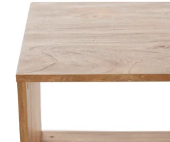 - Open wood frame in a medium mango finish