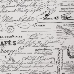 - Linen upholstered armless chair featured in decorative script